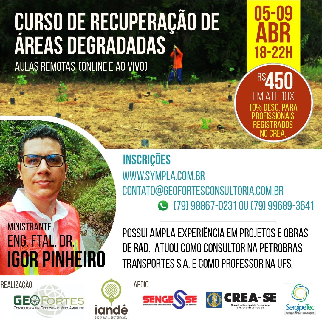 Curso de RECUPERAÇÃO DE ÁREAS DEGRADADAS promovido da parceria @geofortes_consultoria_ltda e @iande.eng.br.